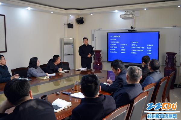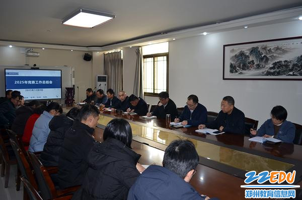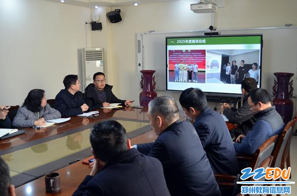 为全面总结技能大赛参赛成效,精准把握技能教学薄弱环节,明确后续技能培养改进方向,2025年12月8日,郑州市国防科技学校组织校级干部、军教处、教务处、各专业部、教研组负责人和国赛辅导教师召开学校竞赛工作总结会。会议覆盖历年竞赛成果对比、2025年竞赛结果与反思、现有不足与短板、后期计划与举措等多层次的分析内容。